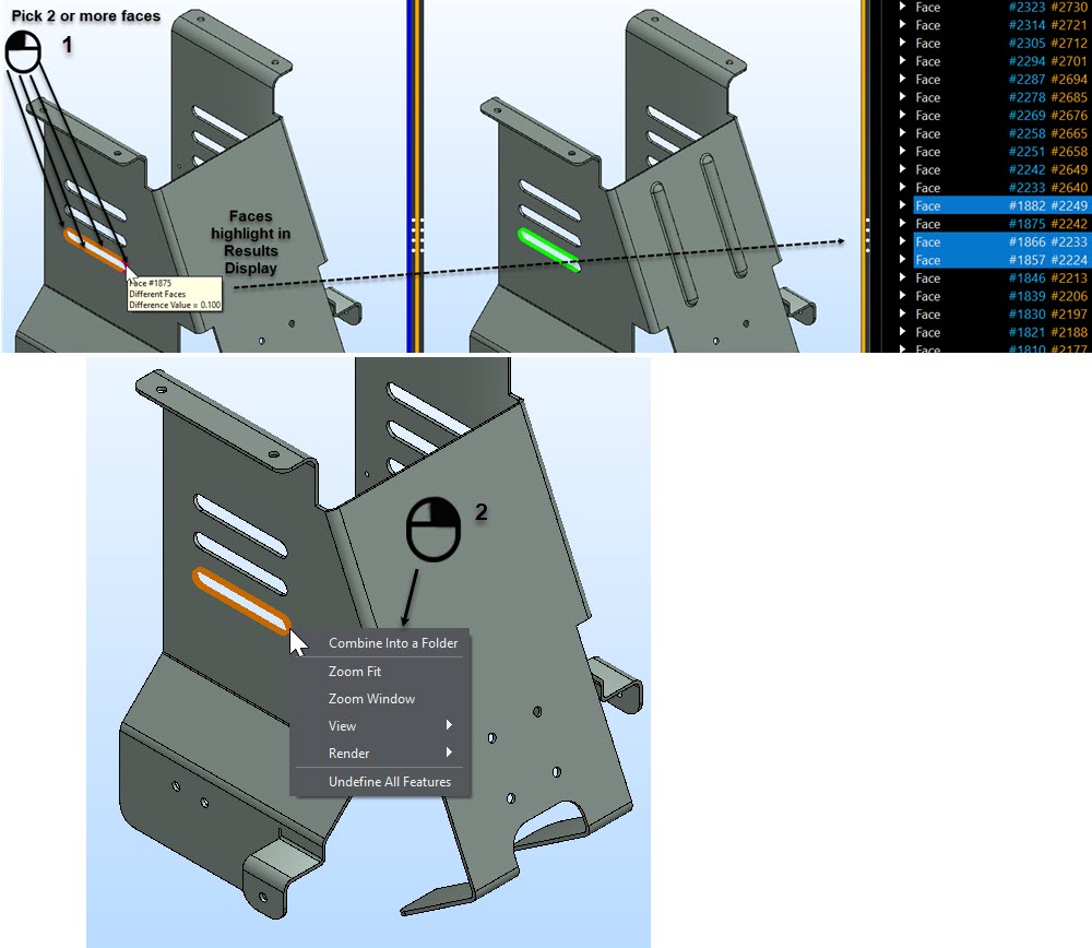 Use new folders and Combined items to condense content and reduce pages in Report. Creating '' Combine Connected Faces" reduces pages for Revised>Fillet and Face.