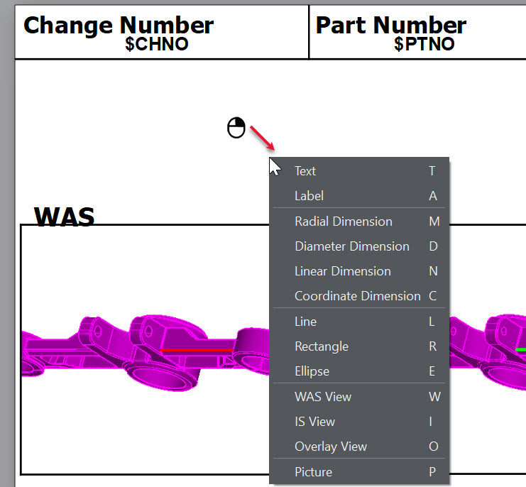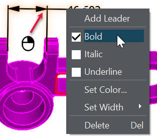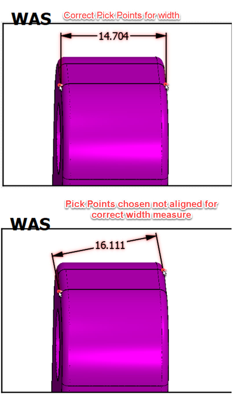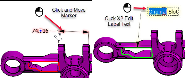 Different locations of hover select (either text or measure entities) used to edit measurement: