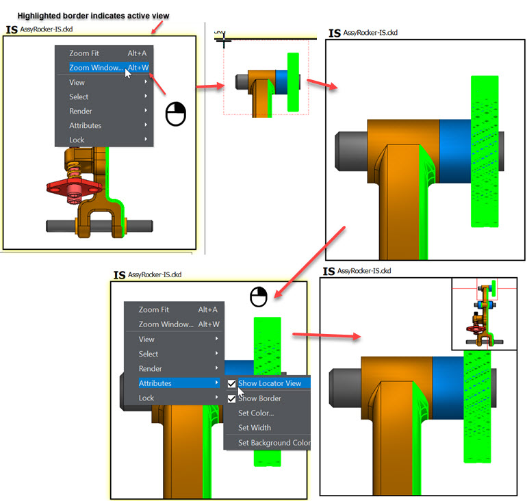 A map style locator view can be created from a primary view by highlighting a view, (click on a view to make it active) and in the right click context menu choose Attributes>Show Locator View: