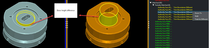 A subset of Matched exists called Partial Match. When detected the user can decide to keep the Matched status, ( will not show as a Difference in report file) or right click Partial Match in results tree and designate as Different.