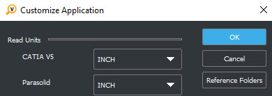 Note: Parasolid and CATIA V5 files are unitless. Validate requires a unit of measure which is set in Customize Application.