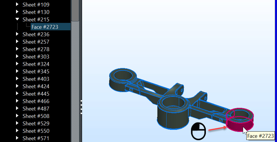 Part Tree hover face highlights object: