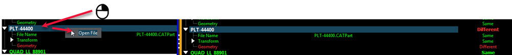 - Target specific file pairs to open a Compare session by using the Windows Shift or CTRL to pick nodes in paired file list and once highlighted, right click and choose Open File.
