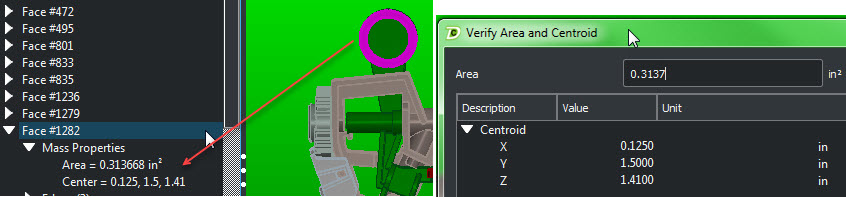 In addition to feature listing in the Part Tree, the Pattern area will list identical features located in object when 3 or more are detected. Pattern detection includes holes, fillets and chamfers.