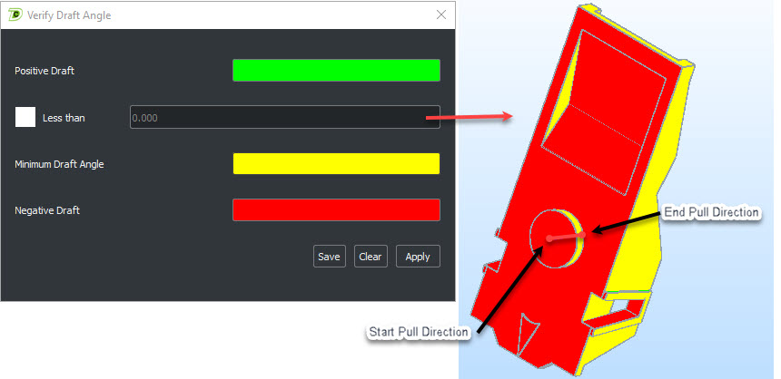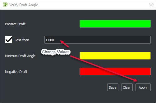 Minimum Draft Angle, uncheck Less than option ID's 0 degree draft angle: