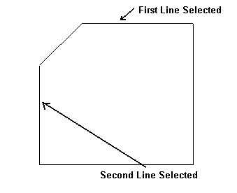 5. Select the second line. The chamfer line is created in the plane defined by the selected entities. The selected lines are trimmed or extended to their intersections with the chamfer line.