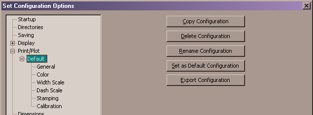 Use this setting to indicate the currently selected configuration as the default configuration at startup. Selecting a new configuration in the Setup dialog in the print sequence will make that configuration the default for the next print operation. The default configuration is identified by a trailing '*' character.