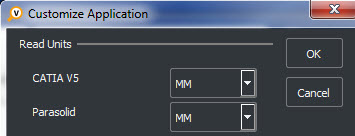 Setting Units Files will open and display in units set in file. Unit Settings for CATIA V5 and Parasolid files